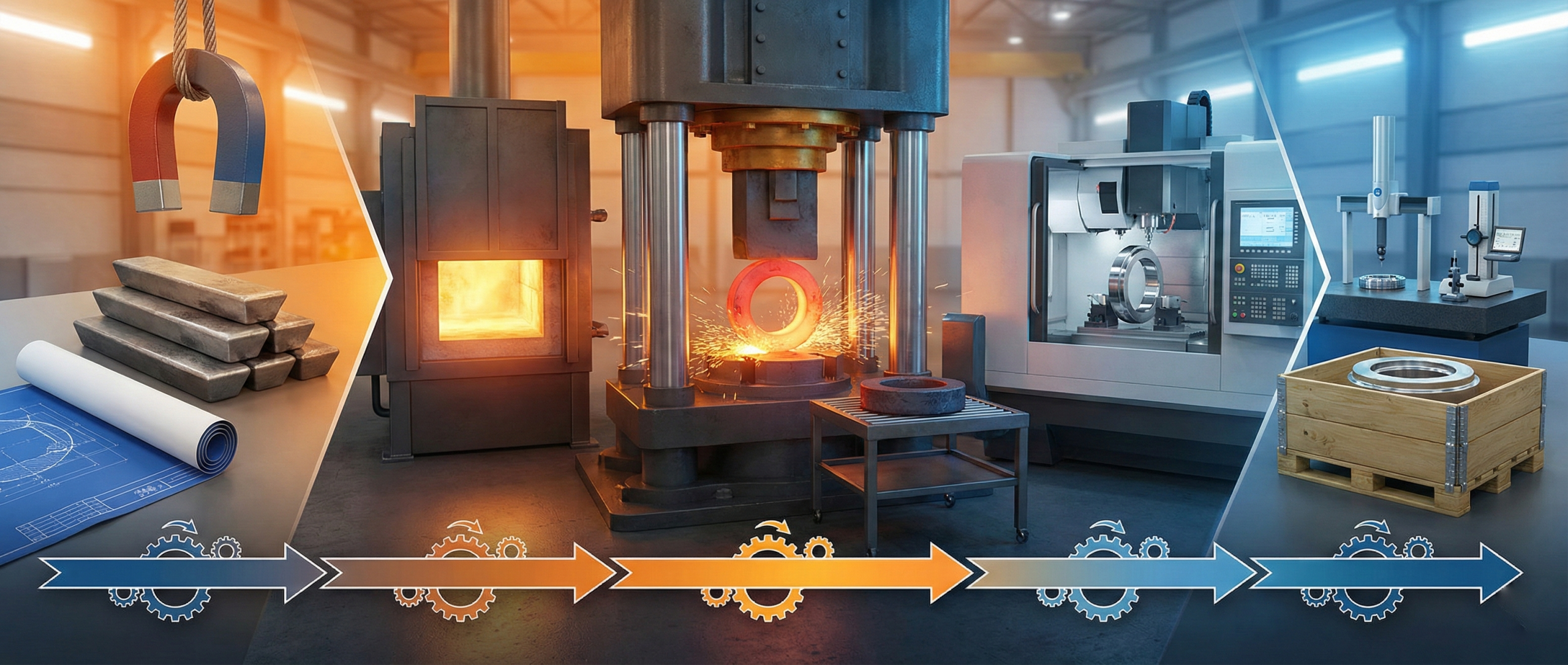 Many projects get delayed here because procurement waited too long to release the purchase order. The forge can’t start without verified material. No amount of expediting changes steel mill schedules.