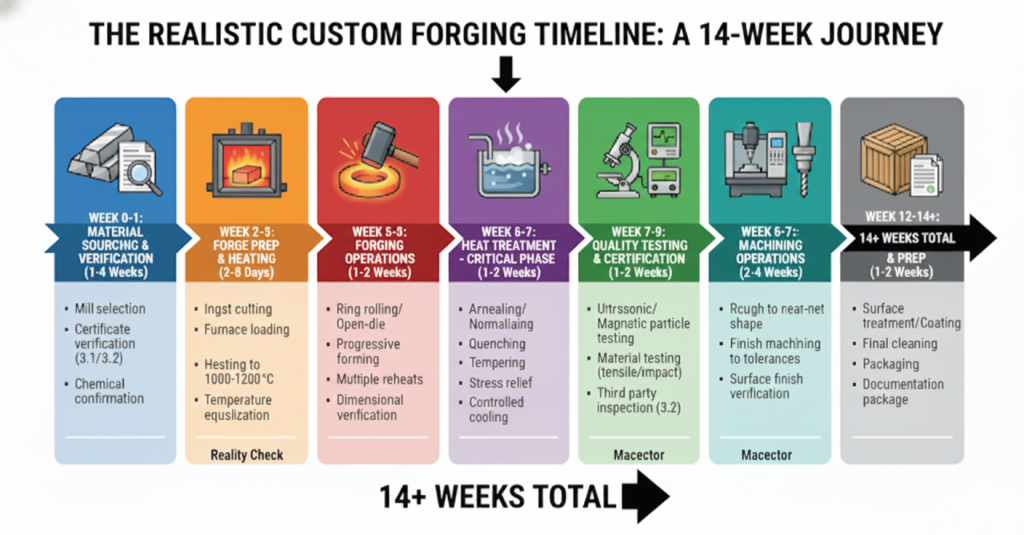 The truth is, metal forging isn’t like ordering off-the-shelf parts. Every custom forging follows a precise sequence of steps, each with its own timeline, its own critical checkpoints, and its own potential delays.